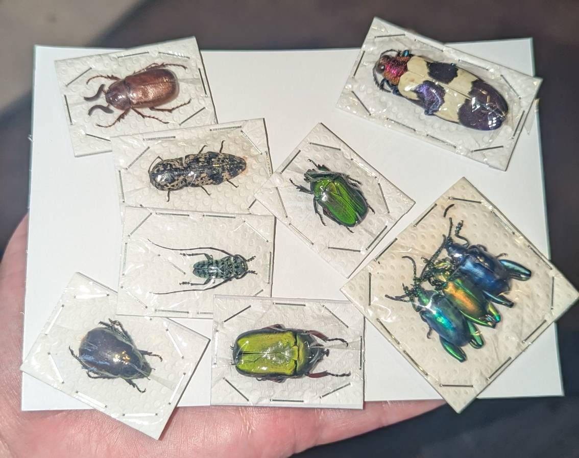 Inspire your creativity with these intriguing ethically sourced beetles from Thailand, we source directly from rearing projects and through ethical collecting practices that support native habitats in Thailand, in-turn directly providing rural villages income and an alternative to slash and burn agriculture. Insect specimens for study, photography, school projects. Craft your entomology skills, learn to mount your own specimens. These beetles are brightly colored and striking in appearance and also suitable for artistic creation and insect framing.